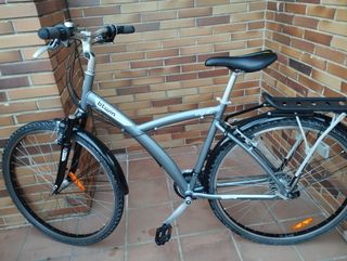 Bicicleta de trekking Btwin original 5, de aluminio,talla L, con ruedas de 700mm, (28") grupo Sram de 3x7 v, sillín Ergo Fit, potencia regulable, portabultos y timbre. Esta impecable tiene muy poco uso , funciona perfectamente,lista para utilizar. Decathlon, Rockrider, Riverside, ciudad, camino, paseo, híbrida, mixta, montaña.