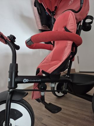Triciclo infantil de la marca Kinderkraft en color rosa. Perfecto para paseos. - Capota para el sol. - Barra de seguridad. - Reposapiés. - Ruedas resistentes.