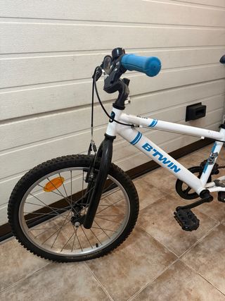 Bicicleta infantil de la marca B'TWIN, ideal para los niños/as. Diseñada para ofrecer diversión y seguridad en cada paseo. - Cuadro blanco con detalles en azul. - Puños de manillar en color azul. - Rueda delantera de 16 pulgadas.