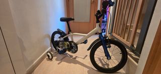 Bicicleta infantil de la marca Btwin, ideal para niños de 3 a 6 años. Su diseño es llamativo y está pensada para los primeros paseos. - Cuadro de acero. - Frenos delanteros y traseros. - Guardabarros delantero y trasero. - Sillín ajustable en altura.
