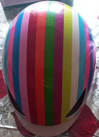 Casco de bicicleta infantil con un diseño de rayas muy colorido. Perfecto para proteger a los más pequeños mientras disfrutan de sus paseos. - Diseño de rayas verticales vibrantes. - Tonos alegres y llamativos.