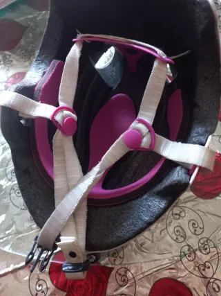 Casco de bicicleta para niña con diseño de Barbie. Está en buenas condiciones y es ideal para proteger a las niñas durante sus paseos en bici. - Diseño rosa con corazones y flores. - Incluye imagen de Barbie. - Perfecto para niñas.