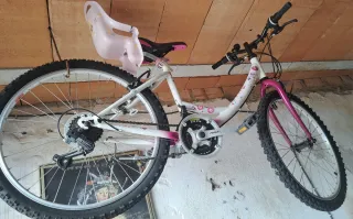 Bicicleta con sillita rosa (desmontable)
