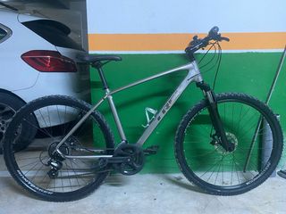 Trek modelo 4300 MTB casi sin uso con ruedas de 26”. Talla S 16”(40,6 cm) con transmisión Shimano Alivio con tres platos y ocho piñones. Sillín muy confortable. Funciona perfectamente, solo le falta una tapeta del mando de los platos.