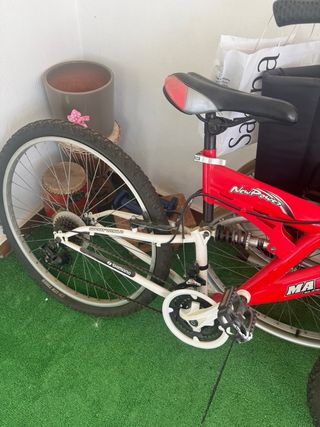 Bicicleta de montaña de color rojo, ideal para paseos y aventuras. - Cuadro de metal resistente. - Ruedas todoterreno. - Sillín negro. - Portabidón negro. Solo necesita cambio de gomas
