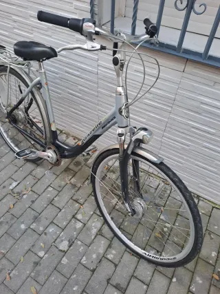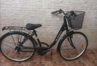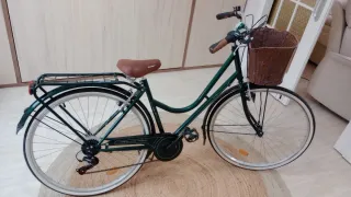 Se vende bicicleta urbana de segunda mano, cuidada y en perfecto estado de funcionamiento. Ideal para ciudad, paseos y trayectos diarios. Características: 6 marchas con cambio suave Frenos en buen estado Ruedas grandes tipo city, estables y cómodas Guardabarros delantero y trasero Portaequipajes trasero Caballete Timbre y reflectantes Sillín ancho y cómodo Estilo clásico, elegante y robusto La bici está lista para usar, no necesita ajustes ni reparaciones. Se - Cuadro robusto y manillar ergonómico. - Sillín cómodo para trayectos largos. - Portabultos trasero para mayor capacidad. - Ruedas de buen tamaño para estabilidad.