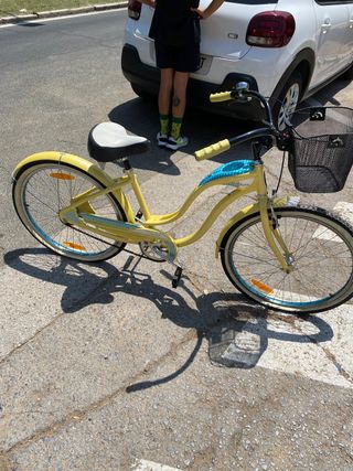 Bicicleta de paseo Schwinn Starlet en buen estado.Ya no se fabrica.Ideal para disfrutar de paseos.Está nueva, es preciosa y es tipo americana con el freno a contrapedal. - Color amarillo. - Diseño clásico de paseo. - Cesta delantera. - Sillín muy cómodo.