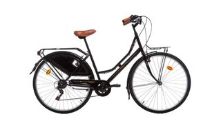 Bicicleta de estilo clásico, ideal para paseos urbanos. - Cuadro de color negro. - Guardabarros delanteros y traseros. - Sillín negro. - Ruedas con llantas plateadas.