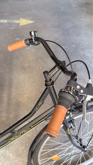 Bicicleta con estilo, holandesa, vintage, retro y clásica, sillín de cuero Brooks B66, freno de contra pedal, tiene sus huellas del tiempo pero va como la seda. Tiene accesorios como guarda cadenas, lonas laterales para no enredar faldas que entregaré. Además es perfecta para paseos. - Cuadro robusto de color negro y teja. - Sillín de cuero Brooks negro. - Manillar curvo con puños color miel. - Ruedas de llanta clara. 28.
