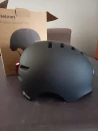 Casco de bicicleta de la marca Youin en color negro. Diseñado para protegerte mientras disfrutas de tus paseos. - Diseño moderno y elegante. - Incluye luz trasera integrada. - 4 modos de luz. Una fija y 3 modos intermitentes. - Correas ajustables para un ajuste seguro. Sin estrenar. Me costó hace 2 años 29,90€. No se ha sacado de la caja ni se ha usado nunca.