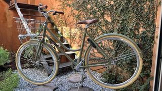 Bicicleta de paseo verde con cesta