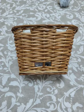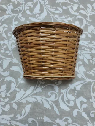Cesta de mimbre tejida a mano, ideal para colocar en el manillar de tu bicicleta. Añade un toque rústico y práctico a tus paseos. - Material: Mimbre natural. - Color: Tostado. - Diseño: Tejido entrelazado.