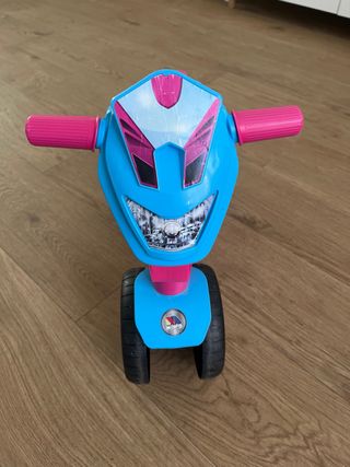 Moto azul y rosa Molto de 12-36 meses Altura (hasta el asiento): 27 cm. Dimensiones: 52 x 20 x 44 cm Usada unos meses solamente Una fabulosa moto correpasillos de color rosa, con 4 ruedas para la máxima estabilidad de los mas pequeños ´todo terreno´ para disfrutar de paseos y carreras por donde tú quieras. 3, 2, 1 y ¡a correr! Consigue esta fantástica moto correpasillos diseñada en color rosa. Diversión y seguridad van ligados a esta moto correpasillos hecha para tu peque. Disfrutarán corriendo de un lugar a otro en esta fantástica moto correpasillos como si fuesen pilotos de carreras. El material con el que están realizadas las