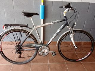 Preciosa bicicleta de adulto marca TREK100, ideal para paseos por ciudad o montaña. Sillín acolchado, 3 platos, 7 piñones, ruedas anchas y con dibujo. Muy poco uso, en perfecto estado, muy cómoda y bonita. Costó más de 600 euros, la vendo porque me mudo y no me la puedo llevar. Extras: - Luces delantera y trasera - Cesta delantera desmontable - Herramientas llaves alen - Bolsa bajo asiento - Peana para sostenerla - Funda plastificada - Inflador de ruedas - Candado