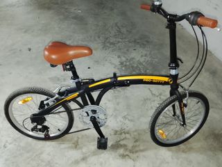 Bicicleta plegable de paseo en excelente estado. - Color negro con detalles amarillos. - Sillín marrón. - Ruedas de 20 pulgadas. - Marca PRO-GOTTY.