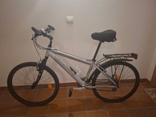 Bicicleta de paseo BTWIN en buen estado. Ideal para trayectos urbanos. - Color negro con detalles beige. - Incluye portaequipajes trasero. - Luces delantera y trasera. - Muy poco uso. - Rueda de 29.