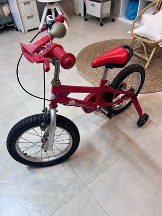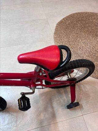 Bicicleta infantil de color rojo, casi sin uso. Ideal para los primeros paseos. - Ruedines incluidos para mayor estabilidad. - Diseño llamativo y divertido.