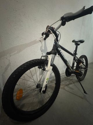 Bicicleta infantil de 20 pulgadas en muy buen estado. - Cuadro de color negro y naranja. - Ruedas todoterreno. Se ha usado en 2 ocasiones, ideal para empezar a disfrutar paseos y pequeñas rutas.