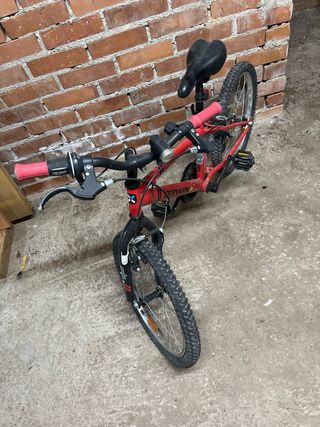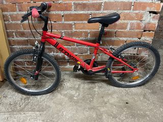 Bicicleta infantil B'TWIN de color rojo. - Ruedas de 20 pulgadas. - Frenos delanteros y traseros. - Sillín ajustable en altura. Se ha usado dos veces o tres como mucho