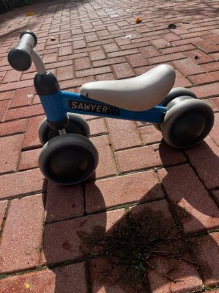 Bicicleta de aprendizaje Sawyer en color azul y blanco. Ideal para los más pequeños. - Diseño de tres ruedas. - Asiento acolchado. - Manillar con puños de goma.