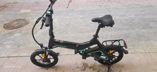 Bicicleta eléctrica plegable de la marca QiCycle, modelo Xiaomi. - Diseño compacto y fácil de transportar. - Ruedas de 16 pulgadas. - Sillín ajustable. - Manillar plegable. La bateria carga, no he calculado cuantos kilometros, aprox diria entre 10 o 20 km, dependiendo de desnivel.