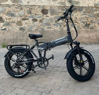 Bicicleta eléctrica plegable SAMEBIKE XWXL09 con ruedas anchas (fat tire). LA BATERIA ESTA AGOTADA! 🪫 El comprador la puede adquirir nueva en la tienda de online de Samebike por 299€. - Valorada en 1.159€ - Color: Negro. - Potencia del motor: 500W. - Diseño plegable para fácil transporte y almacenamiento. - Ruedas anchas para mayor estabilidad y agarre en diversos terrenos. - Bateria agotada requiere nueva bareria.