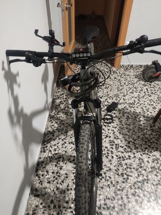Bicicleta BH Atom lynx 6 27,5. La batería sólo carga hasta el 76% por eso el precio tan económico ESPECIFICACIONESCuadro : 160 mm Full Suspension Alloy 27,5"+Amortiguador : RockShox MonarchHorquilla : Rock Shox YARI 160 mm 15QRPotencia : BH A-HeadDirección : TaperedManetas cambio : Shimano DeoreCambio trasero : Shimano XT 10spPedalier : FSA 32TCassette : Sunrace CSMS2 10sp (11-40T)Cadena : KMC X10Freno delantero : Shimano MT500 180mmFreno trasero : Shimano MT500 180mm.Capacidad batería: 500 Wh Tipo de cambio: 10v. Tipo frenos: 180mm Suspensión delantera: 160mm Voltaje sistema: 36 V Potencia: 250 W Tipo motor: Brose S Ruedas: 27,5"+