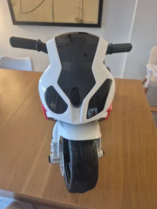 Moto Eléctrica para Niños BMW S1000RR 12V Color Blanco – Motor de 45W, Luces Frontales y Panel de Música Está en buen estado, funciona perfectamente la batería. solo tiene las pegatinas delanteras rozadas del uso. Ideal para niños de 3-4 años a mi hijonle queda grande, por eso la vendo. Conservo la caja. Motor: 1x45W, para un rendimiento confiable y seguro. Batería: 12V3,5Ah, proporcionando hasta 1 hora de uso continuo tras una carga completa de 8 horas. Dimensiones: 92 cm de largo x 43 cm de ancho x 56 cm de alto. Peso: 10 kg; peso del paquete: 12 kg. Velocidad máxima: 2,5-4,5 km/h, ideal para niños en etapa de aprendizaje.