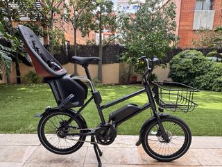 Bicicleta Veloe estilo longtail, ideal para transportar niños o carga. - Color verde - motor Bosch cargo line, bateria 500 w - 400 km - Dos asientos infantiles. - Cesta delantera. - Motor eléctrico.