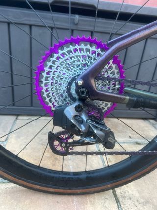 Bicicleta gravel Cannondale Topstone Carbon con horquilla Lefty. - Cuadro de carbono con bujes extralite - Ruedas de 700c. - cambio gx electrico - cassette y plato garbarruk