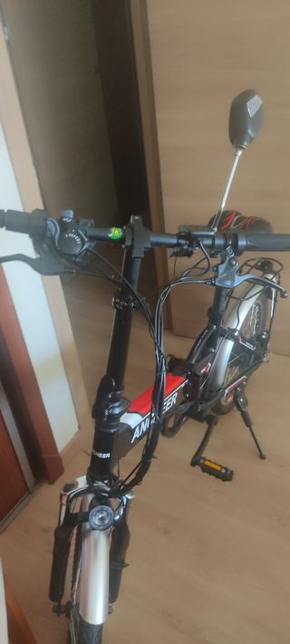 Vendo bicicleta eléctrica plegable de la marca esswatt. Es bastante divertida tiene acelerador de puño y sin pedales, es de serie por lo que no tendras problemas para circular y puedes meterla en metro y renfe, porque es una bicicleta como el numero en el bastidor indica. La ultima vez que la use, la bateria dura 5 kilometros mas o menos, asi que lo recomendable seria cambiarla, la puedes conseguir por entre 70 y 100 euros dependiendo de la calidad, la daria autonomia de 50 a 60 km se puede cambiar literalmente en 5 minutos. - Bicicleta eléctrica plegable. - Marca: esswatt. - Ideal para ciudad y demas