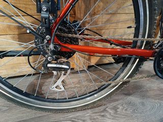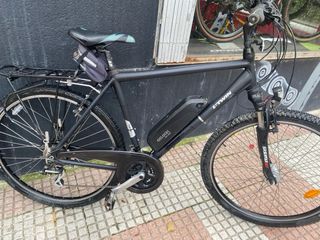 Bicicleta de la marca Kross modelo trekking para ciudad o caminos,suspensión delantera y en la tija del sillin,21 velocidades,luz delantera y trasera mediante dinamo en eje delantero,lleva montado kit eléctrico de asistencia al pedaleo,motor de 250w ,funcionamiento correcto de todo,el precio es xq la batería ya no esta al 100x 100 pero tiene bastante autonomía,(la batería se puede mandar a reparar o coger una nueva y estrenas bici,lo cual varía el precio)