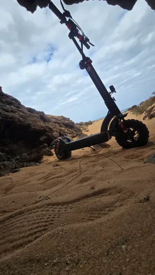 Tiene ruedas de 11" por lo que se puede meter bien por tierra o ciudad, doble suspensión, 45 kilómetros de autonomia y 1.000w de potencia en la rueda trasera que es dinamo por lo que se recarga en bajadas y asi, tiene intermitentes, luces y bocina,hace 4 meses la lleve a revisión de bateria y todo bien, la doy con el candado y básicamente la vendo por que paso de pagarle seguro