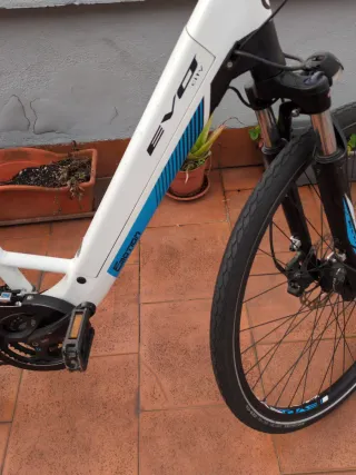 ebike BH Evo City Wave Pro (código: ev456) muy equipada. Funciona perfectamente, 100% batería cargada, autonomía 80km modo ECO (5 modos). - Cuadro de aluminio robusto. - Motor 250W, Batería 500W (4h carga), dínamo Shimano. - Ruedas 28": delante Tannus (sin aire), detrás Schwalbe Marathon E Plus (máx. protección antipinchazos). - Frenos hidráulicos Magura HS 11 (zapatas nuevas). - Cambio Shimano XT 10 vel. Monoplato 48 dientes. - Portabultos KLICKfix extraíble, parrilla Racktime Snapit, candado Racktime bloqueante baúl-parrilla. - Luces a dínamo, reflectantes. Manillar y potencia ergonómicos. - Cubreplatos, amortiguación, timbre,...