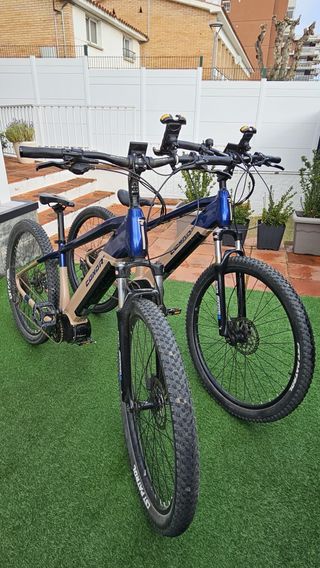 Se venden dos bicicletas eléctricas de montaña Conor Borneo. Son ideales para rutas y senderos. 1.300 € cada una. Se venden juntas o por separado. -Motor garantia 3 años (tienen uno), -Bateria garantia 2 años (tienen uno). Compradas en febrero de 2024. - Color azul y beige. - Ruedas de montaña, Alloy 29" double wall 36h, W/Hubs: 100x135mm -Frenos Shimano disco MT200 -Plato: Aluminio 170mm 34T -Batería:Phylion GX20 720Wh 36V/20Ah -Cargador: PHYLION 42V/2A -Motor: CONOR/powered by VINKA E50 36v*250W*85Nm Autonomia de bateria unos 90 km en llano.
