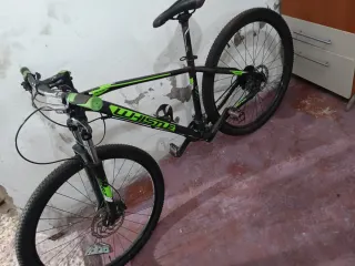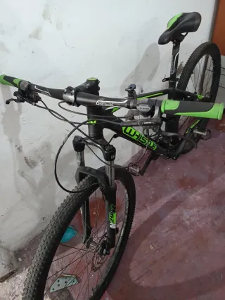 Bicicleta de montaña Whistle con un diseño llamativo en negro y verde. - Cuadro de aluminio. - Ruedas de 29 pulgadas. - Frenos de disco. - Suspensión delantera. -Esta en perfecto estado lista para utilizarla al detalle , motivo de venta por falta de uso cambiaría por bicicleta eléctrica aportando diferencia