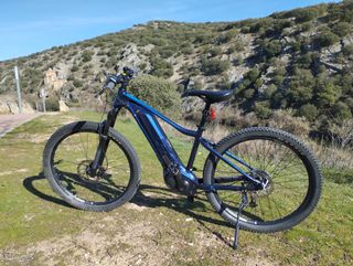 Ebike del decathlon modelo E ST 500 ,Talla M ,lleva motor Brose (specialized) 420 w de batería extraíble. Con solo 1000 kms Mejorada con horquilla RST de 29 pulgadas ,rueda delantera de 29 pulgadas tubelizada con disco de 180 mm ,sillín de carbono, tija Zoom con amortiguacion y pedales automáticos Shimano. Incluye cargador ,dos llaves para la batería y dos juegos de pastillas de freno de recambio. Usada por persona mayor únicamente. Tiene algún leve roce muy ligero del uso,se vende por cambio a doble suspensión.