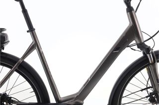 Bicicleta eléctrica Giant de color gris. - Cuadro de aluminio. - Batería integrada. - Ruedas de 28 pulgadas. - Frenos de disco.40 km