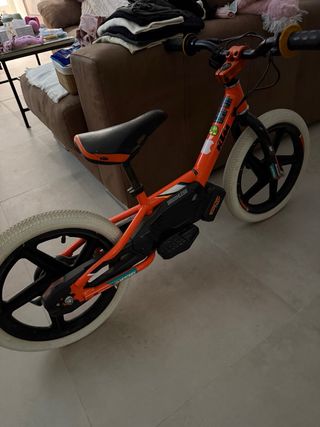 Bicicleta eléctrica KTM Stacyc de 16 pulgadas para niños. Ideal para iniciarse en el mundo de las dos ruedas. - Colores KRTM naranja y negro. - Ruedas de 16 pulgadas. - Cubiertas nuevas sin apenas uso. - Incluye batería y cargador.