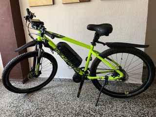 26 pulgadas megamo, autónomia 50km,cambios Shimano Bicicleta convertida a eléctrica con kit ,manillar modificado y portaequipajes para la batería , Pesa unos 20kg y medio aproximado muy ligera Tiene 1.100km hechos