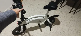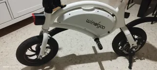 Bicicleta eléctrica Windgoo de color blanco. Ideal como medio de transporte urbano. No pesa nada. 25 km/h - Diseño compacto y ligero. - Ruedas de 12 pulgadas. - Sillín negro. - Faro delantero y luz trasera. No se ha usado casi nada. Batería completamente nueva, con 1 carga como prueba. Mejor ver y probar IDEAL REGALO DE REYES