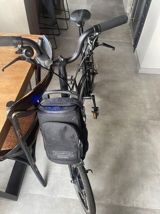 Bicicleta eléctrica Brompton P-line M4L P50 del año 2023. Modelo de alta gama con asistencia eléctrica. - Color negro. - Cuadro de aluminio. - Ruedas de 16 pulgadas. - Sistema de plegado rápido. - Batería extraíble. Nueva cuesta 4.200€ Nunca usada. Factura oficial por Escapa.