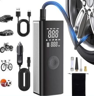 Inflador eléctrico inalámbrico, ideal para ruedas de coche, moto, bicicleta, balones y otros inflables. - Carga rápida. - Parada automática. - Pantalla digital.