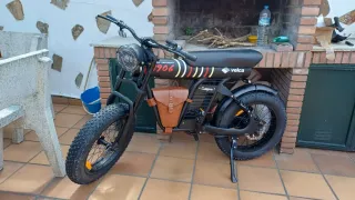 Bicicleta eléctrica con un diseño inspirado en modelos clásicos. Ideal para desplazamientos urbanos con estilo. - Ruedas anchas para mayor estabilidad. -frenos nutt y shimano (hidráulicos) - Sillín marrón de aspecto vintage. - Faro delantero redondo. - Batería integrada en el cuadro 140km autonomía limitada -corre 52kmh tiene un cable escondido para limitarla a 25kmh -con papeles de que es una bici eléctrica y no un ciclomotor MÁS INFO AL PRIV