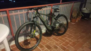 Bicicleta eléctrica de montaña en color verde. Se vende por no uso. Se puede probar, pero se solicitará DNI y fianza. Specialized LEVO FSR COMP 6FATTIE - Cuadro de aluminio. - Ruedas anchas para todo terreno. - Suspensión delantera y trasera. - Bolsita portaobjetos en el manillar. - Portabidón. - Ruedas 27,5+ y 28 pulgadas. - Talla 21. - 12.240,6 Km. * Frenos y batería nuevos. * Motor revisado. * La bici se encuentra en Sant Cugat del Vallés.