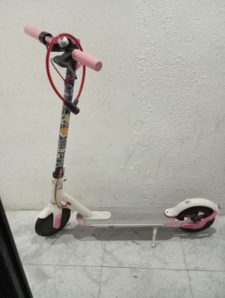 Patinete eléctrico Xiaomi en buen estado. Ideal para moverte por la ciudad. Funciona perfectamente. Se vende por no usar. - Color blanco con detalles rosas. - Incluye candado. - Incluye cargador original. - Diseño ligero y manejable.