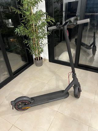 Patinete eléctrico Xiaomi Pro 2 en color negro. Ideal para desplazamientos urbanos. - Autonomía de hasta 45 km. - Diseño plegable para facilitar su transporte. - Ruedas de 8.5 pulgadas. No está completamente nuevo, creo que debe tener entre 100 y 200 km en total. También incluye una rueda de repuesto y, obviamente, el cargador.