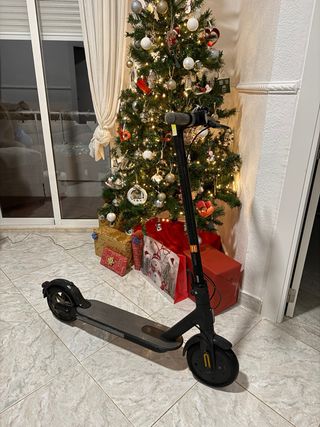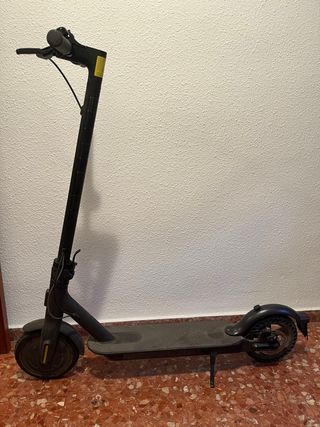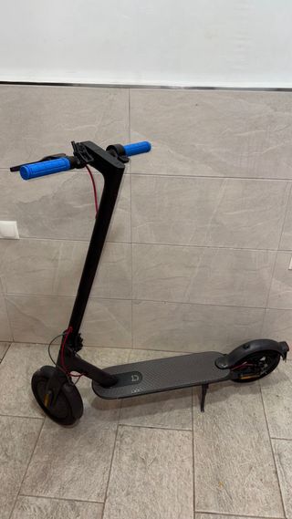 Patinete eléctrico de color negro, ideal para desplazamientos urbanos. - Diseño plegable para facilitar su transporte. - Ruedas delanteras y traseras revisadas y presión adecuada. - Plataforma antideslizante. - Luces completamente funcionales. - Incluye pieza extra para salvar la holgura propia de los patinetes. - Incluye soporte para guardabarros trasero Xiaomi (hace de soporte ante la vibración al circular para evitar que se parta el guardabarros). - Marcas de desgaste por uso visibles en las fotos. - Recién revisado y se entrega con batería cargada y cargador.