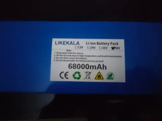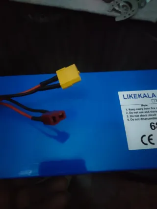 Batería eléctrica de alta capacidad. - Capacidad: 68000mAh - Voltaje: 48V - Marca: LIKEKALA - Conectores: XT60 (amarillo) y T-Dean (rojo) - Indicaciones de seguridad impresas en la etiqueta. Totalmente nueva