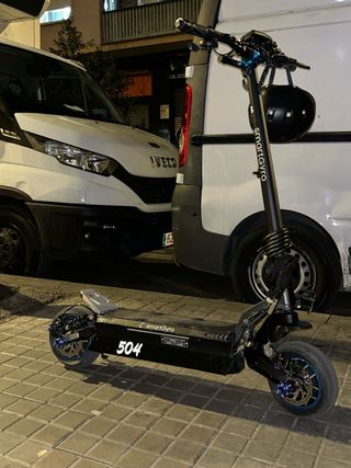 Patinete eléctrico Kukirin G2 Master en color negro. Diseñado para ofrecer una experiencia de movilidad urbana. - Manillar ajustable en altura -Doble motor 2*1000 -Batería de 52v 20,8ah -Limitado a 25km velocidad max 75km -Luces led en el lateral -Pastillas de freno nuevas -Centralita nueva